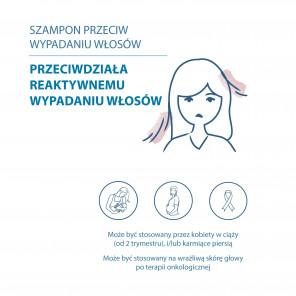 Dermatologiczny szampon opracowany z myślą o osobach, które zauważają nadmierne przerzedzanie się włosów.