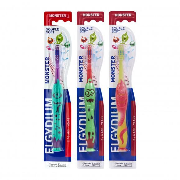 Elgydium Kids, szczoteczka do zębów dla dzieci, Monster, 2-6 lat, 3 szt.