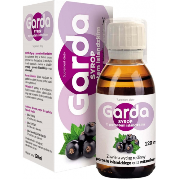 Garda Max to syrop z porostem islandzkim o smaku czarnej porzeczki, przeznaczony dla dzieci od 3 roku życia i dorosłych.