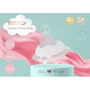 Zestaw smoczków kompatybilnych z butelkami Neno, w rozmiarze M, idealnie dopasowujący się do wieku dziecka.