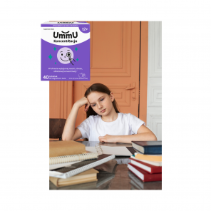 Produkt Ummu Koncentracja to suplement diety przygotowany specjalnie z myślą o dzieciach powyżej 12 roku życia. Wykorzystuje się go w okresach intensywnej nauki, wysiłku umysłowego oraz obniżonej koncentracji i uwagi.