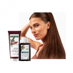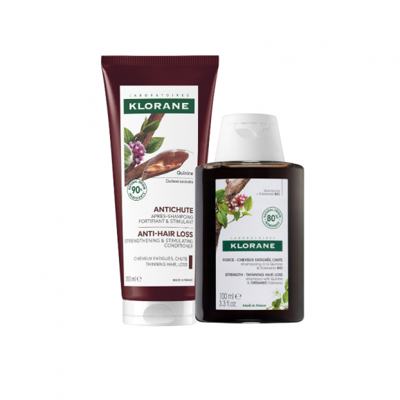 Zestaw Klorane to połączenie odżywki z chininą i organiczną szarotką, która wspiera witalność włosów i ułatwia ich rozczesywanie, z szamponem wzmacniającym w wersji GRATIS, działającym oczyszczająco i przygotowującym włosy do dalszej pielęgnacji.