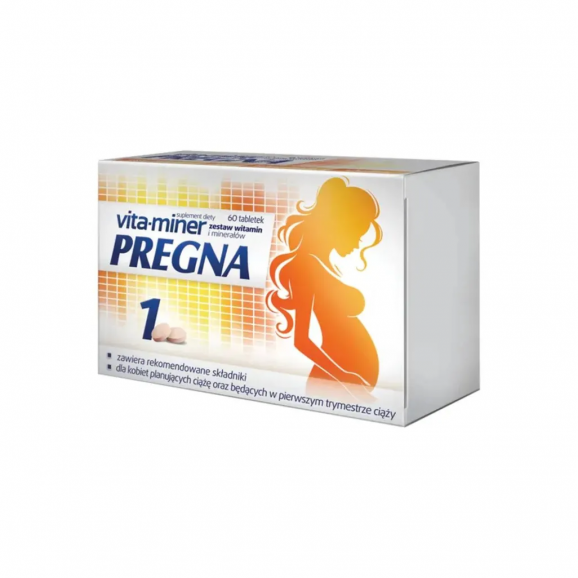 Vita-Miner Pregna to suplement diety opracowany specjalnie dla kobiet planujących ciążę oraz będących w 1. trymestrze.