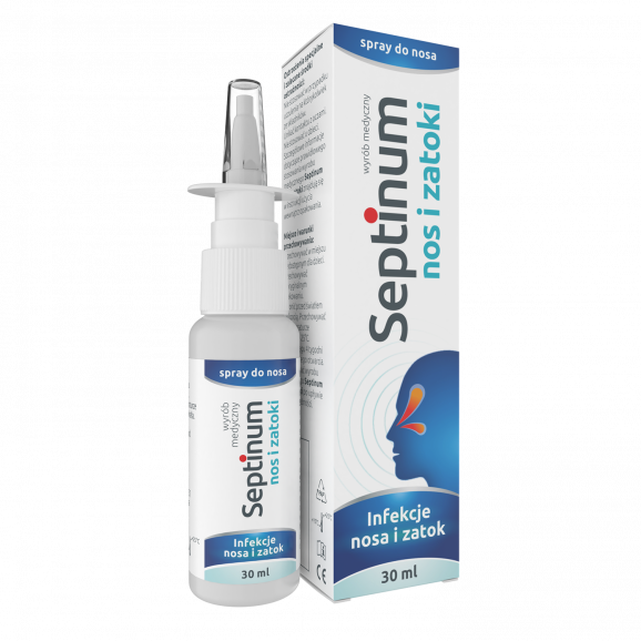 Septinum nos i zatoki to spray do nosa dla osób dorosłych polecany do stosowania w szczególności w trakcie infekcji górnych dróg oddechowych. Wspomaga leczenie i oczyszczanie nosa podczas infekcji bakteryjnych i grzybiczych nosa i zatok.