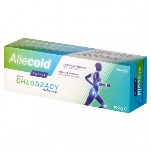 Allecold Active to chłodzący krem, przeznaczony do pielęgnacji mięśni, stawów i kręgosłupa po intensywnym wysiłku fizycznym. Produkt zawiera składniki przynoszące ulgę w dolegliwościach związanych z przeciążeniem fizycznym, zapewnia przyjemne uczucie odprężenia i chłodzenia. Zawiera innowacyjny kompleks chłodzący ColdActive, czyli unikalne połączenie składników aktywnych i wyciągów roślinnych, przynoszących ulgę i uczucie odprężenia.