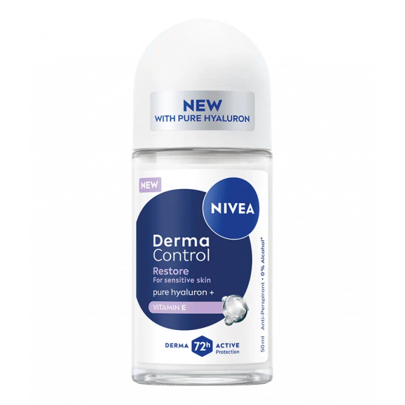 Nivea Derma Control Restore roll-on to wyjątkowy antyperspirant stworzony z myślą o skórze wrażliwej. Dzięki składnikom takim jak czysty kwas hialuronowy i witamina E, produkt nawilża i wspiera regenerację naskórka.