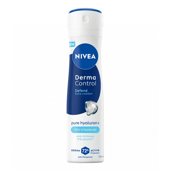 NIVEA Derma Control Defend Antyperspirant Spray oferuje zaawansowaną ochronę przed potem i nieprzyjemnym zapachem na 72 godziny.