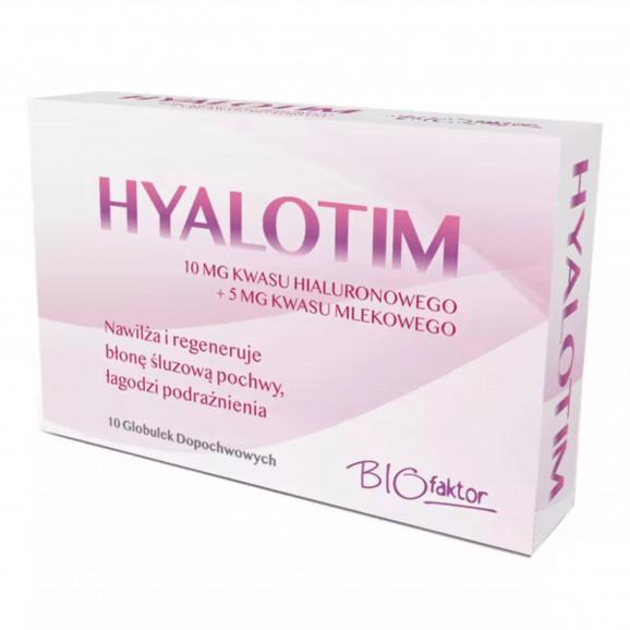 Hyalotim to wyrób medyczny w formie globulek dopochwowych stosowany w celu nawilżenia błony śluzowej pochwy oraz łagodzenia podrażnień. Pomaga w przypadkach suchości pochwy związanej z wiekiem, hormonalną terapią zastępczą, czy stosowaniem środków antykoncepcyjnych. Może również wspierać gojenie po porodzie, zabiegach ginekologicznych, chemioterapii, czy radioterapii. Zawiera kwas hialuronowy oraz kwas mlekowy.