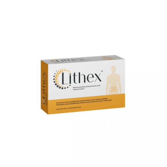 Lithex to suplement diety w formie kapsułek, który wspiera prawidłowe funkcjonowanie nerek. Zawiera kombinację cytrynianu potasu oraz ekstraktów roślinnych, takich jak: Phyllanthus niruri, czarnuszka siewna, skrzyp polny, lubczyk ogrodowy, bylica pospolita, i rdest ptasi. Oferuje m.in. działanie zwiększające diurezę oraz ułatwiające wydalanie złogów z dróg moczowych.