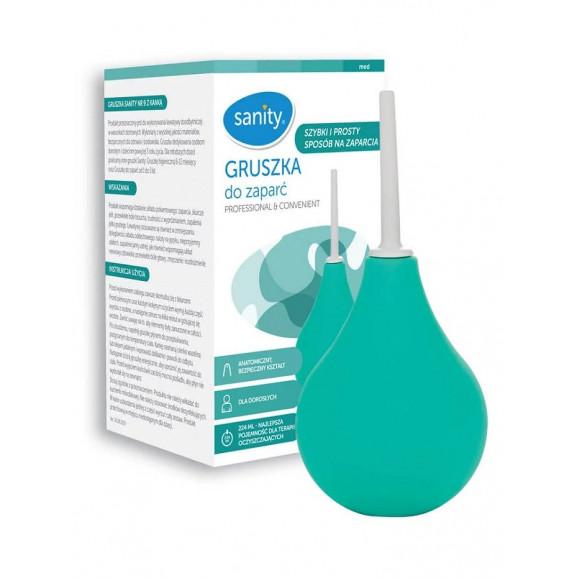 Sanity, gruszka do zaparć, nr 9, to praktyczny wyrób medyczny do wykonywania lewatywy doodbytniczej. Jej anatomiczny kształt i wysoka jakość atestowanych materiałów zapewniają bezpieczeństwo dla zdrowia i środowiska. Dedykowana dorosłym i dzieciom od 3 lat, wspiera przy leczeniu zaparć, oczyszczaniu z toksyn oraz wspomaga diarogogikę.