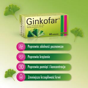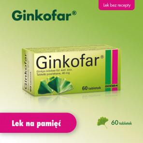 Ginkofar jest lekiem, którego główną substancją czynną jest wyciąg z liści miłorzębu japońskiego (Ginkgo biloba L.). Produkt wspomaga poprawę zdolności poznawczych u osób starszych i poprawia jakość życia w przypadku łagodnej demencji. Glikozydy flawonowe, ginkgolidy oraz bilobalid działają przez poprawę przepływu krwi w mózgu i rozszerzenie naczyń krwionośnych. Dodatkowo zmniejsza agregację płytek. Preparat nie jest odpowiedni dla kobiet w ciąży ze względu na ryzyko zwiększonych krwawień. Zaleca się konsultację z lekarzem w razie jednoczesnego przyjmowania leków przeciwzakrzepowych lub incydentów padaczkowych.