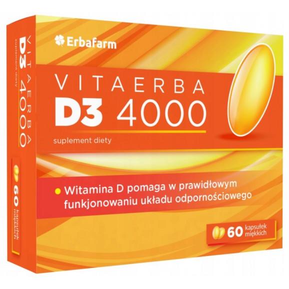 VitaErba D3 4000IU to suplement diety marki ErbaFarm zawierający witaminę D3 (cholekalcyferol) w wysokiej dawce 4000 IU.