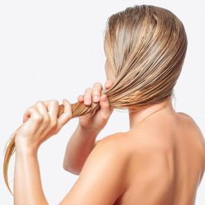 - Nałożyć niewielką ilość szamponu na mokre włosy i delikatnie masować skórę głowy.
