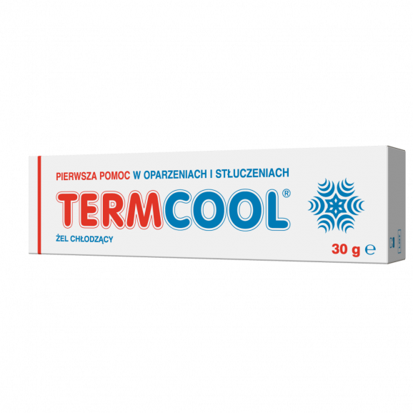 Termcool to specjalistyczny żel chłodzący o działaniu miejscowym, przeznaczony do użycia na oparzenia I stopnia spowodowane wrzątkiem, płomieniem, parą lub nadmiernym słońcem.