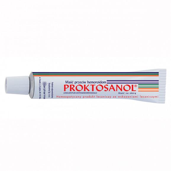 Proktosanol to homeopatyczny produkt leczniczy stosowany w leczeniu hemoroidów oraz związanych z nimi objawów pieczenia i bolesności. Maść wspomaga gojenie pęknięć w obrębie guzków krwawniczych, przynosi ulgę w swędzeniu sromu, a także łagodzi nieprzyjemne odczucia związane z hemoroidami. Zawartość naturalnych składników takich jak ekstrakt z Hamamelis Virginiana i aloesu zapewnia skuteczność działania poprzez stymulację gojenia i łagodzenie stanu zapalnego.