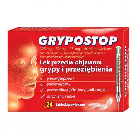 Grypostop to lek zawierający trzy substancje czynne: paracetamol, pseudoefedrynę i dekstrometorfan, co czyni go skutecznym narzędziem w zwalczaniu objawów przeziębienia i grypy.