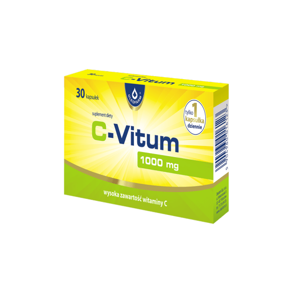C-Vitum to suplement diety dla osób dorosłych, zawierający 1000 mg witaminy C (kwasu L-askorbinowego) w jednej kapsułce.