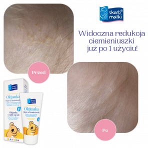 Skarb Matki Olejuszka to naturalny olejek opracowany specjalnie do pielęgnacji skóry głowy niemowląt i dzieci z objawami ciemieniuchy. Zawiera oleje roślinne m.in. z krokosza, brzozy i lipy, które łagodzą stan zapalny, regulują wydzielanie łoju i zmiękczają naskórek.