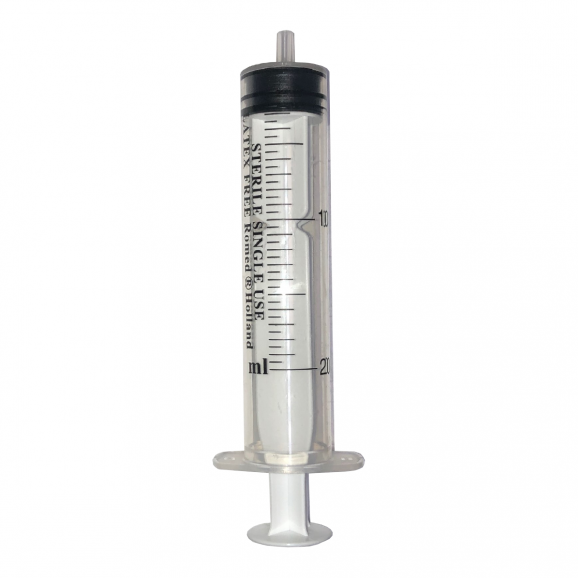 Romed Strzykawka 20 ml 3‑częściowa to jednorazowa, jałowa strzykawka z końcówką stożkową typu LUER. Posiada gumowy tłok z podwójnym elastycznym uszczelnieniem, który zapewnia płynny przesuw i wysoką szczelność. Przezroczysty cylinder oraz wyraźna, trwała skala w kolorze czarnym (podziałka co 0,5 ml) pozwalają na kontrolę zawartości i wygodne dozowanie. Kryza zabezpiecza przed wypadaniem tłoka podczas napełniania do pełnej objętości. Produkt jest nietoksyczny, niepirogenny, pakowany pojedynczo w blister.