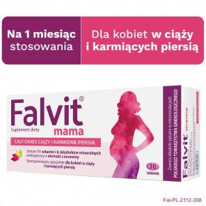 Falvit Mama to kompleksowy suplement diety zawierający komplet niezbędnych witamin i minerałów, idealny w szczególnym okresie ciąży i laktacji. Wzbogaca dietę w takie kluczowe składniki jak kwas foliowy, żelazo, jod i witamina D oraz ekstrakt z żurawiny, wspierając zdrowie zarówno mamy, jak i dziecka. Pomaga pokryć zwiększone zapotrzebowanie organizmu na składniki odżywcze, które mogą być trudne do uzyskania z codziennej diety.