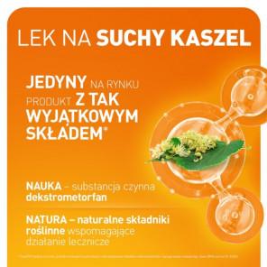 Działanie przeciwkaszlowe dzięki bromowodorkowi dekstrometorfanu, łagodzący wyciąg z lipy.