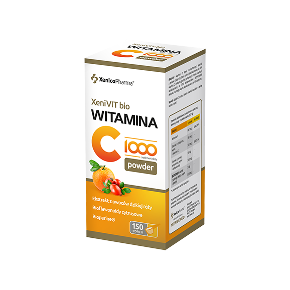 XeniVIT BIO Witamina C 1000 Powder to suplement diety zawierający w sowim składzie unikalną mieszankę witaminy C pochodzącej z różnych źródeł (naturalna witamina C), dodatkowo wzbogaconą o BIOPERINE®, która posiada dodatkowe właściwości przeciwutleniające, korzystnie wpływa na funkcjonowanie organizmu oraz pełni rolę aktywatora podczas wchłaniania witaminy C.
