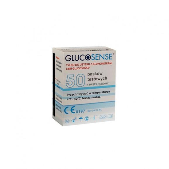 Paski testowe Glucosense używa się wyłącznych do użytku z glukometrem tej samej marki w celu mierzenia poziomu cukru we krwi. Dzięki zastosowanej technologii elektrochemicznej zapewniają dokładne wyniki pomiarów. Paski są zabezpieczone przed zawilgoceniem, co zwiększa ich niezawodność. Należy zachować ostrożność, by wilgoć nie dostała się do pojemnika z paskami - może to wpłynąć na precyzję pomiarów.