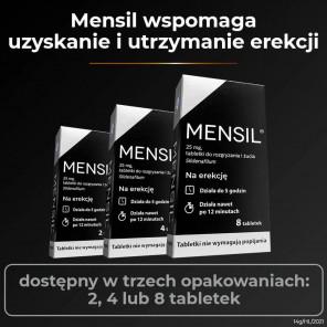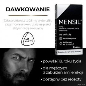 Mensil to lek wskazany do stosowania u dorosłych mężczyzn w leczeniu impotencji, czyli niemożności uzyskania lub utrzymania erekcji wystarczającej do odbycia stosunku płciowego. Zawiera substancję czynną syldenafil, należącą do leków z grupy inhibitorów fosfodiesterazy typu 5 (PDE5). Syldenafil działa poprzez wspomaganie rozkurczu naczyń krwionośnych w prąciu, co zwiększa napływ krwi podczas podniecenia seksualnego. Jest skuteczny wyłącznie przy uprzednim pobudzeniu seksualnym.