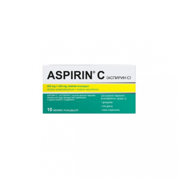 - Nazwa produktu: Aspirin C, 400 mg + 240 mg, tabletki musujące