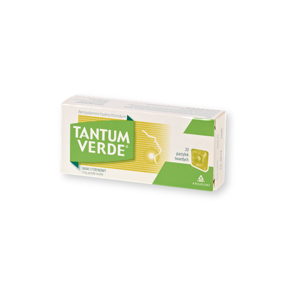 Tantum Verde to produkt leczniczy o smaku cytrynowym. Zawiera substancję czynną - benzydaminę, należącą do indolowych niesteroidowych leków przeciwzapalnych (NLPZ) do stosowania miejscowego i ogólnego o działaniu przeciwzapalnym i przeciwbólowym. Opakowanie zawiera 20 sztuk.