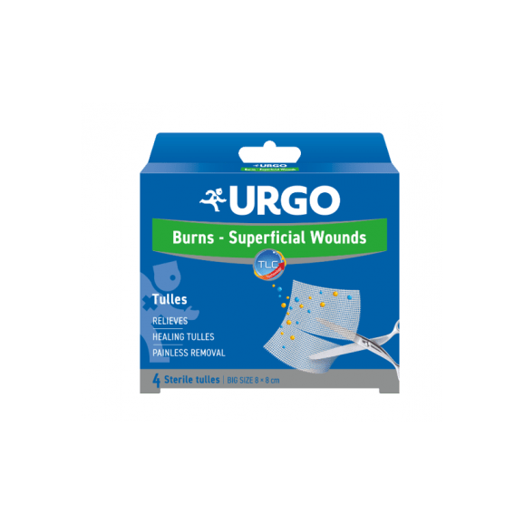 Urgo, Opatrunek na oparzenia i rany powierzchniowe, 8 x 8 cm, 4 szt.