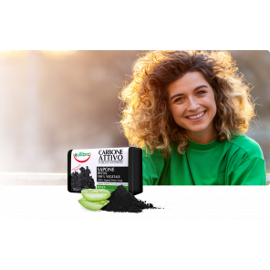 Equilibra Carbo Detox 100% Vegetal Detox Soap to mydło wykonane na bazie 100% roślinnych składników. Produkt zawiera aktywny węgiel drzewny, który doskonale oczyszcza skórę, oraz puder z pestek moreli, który delikatnie ją złuszcza. Tworzy miękką kremową pianę, oczyszczającą i pozostawiającą skórę miękką i jasną. Idealny do codziennego użytku. Mydło jest delikatnie perfumowane, nie zawiera alergenów i nadaje się do każdego typu skóry.