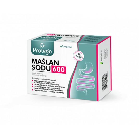 Protego Maślan Sodu 600 to żywność specjalnego przeznaczenia medycznego zawierająca aż 600 mg maślanu sodu, w tym 480 mg kwasu masłowego na każdą kapsułkę.