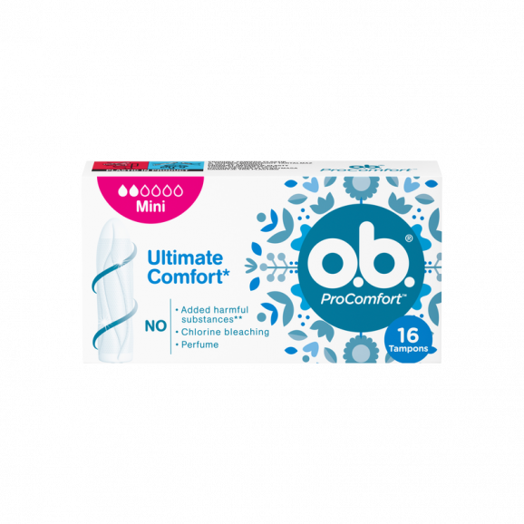 O.B. ProComfort Mini to tampony oferujące najwyższy komfort i skuteczną ochronę dzięki technologii DynamicFit oraz otoczce SilkTouch, która zapewnia lekką aplikację bez uczucia dyskomfortu.