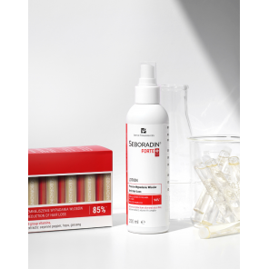 Seboradin Forte to specjalistyczny lotion przeznaczony do pielęgnacji włosów skłonnych do wypadania przez zawartość ekstraktu z drzewa oliwnego i cytrusowego oraz chmielu. Wzmocnienie i pielęgnacja przez wysoką zawartość witaminy H (biotyna) pomagają dbać o strukturę włosów, niwelując ich łamliwość.