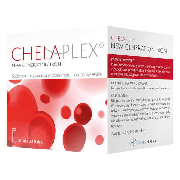 Chelaplex to suplement diety bogaty w żelazo w formie chelatu (diglicynianu żelaza), wzbogacony o witaminę C, co ułatwia wchłanianie żelaza. Przyczynia się do prawidłowego metabolizmu energetycznego, wspomaga produkcję czerwonych krwinek i transport tlenu w organizmie. Skutecznie niweluje uczucia zmęczenia oraz wpływa na prawidłowe funkcjonowanie układu odpornościowego. Produkt ma smak czarnej porzeczki, co czyni spożycie przyjemnym.