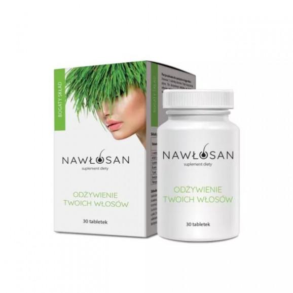 Nawłosan to starannie opracowany suplement diety zawierający aminokwasy L-metioninę i cysteinę będące źródłem keratyny niezbędnej dla zdrowych włosów. Zawiera również MSM (metylosulfonylometan) nazywany "minerałem piękna" oraz biotynę wspierającą wzrost i jakość włosów. Dzięki obecności cynku wzmacnia strukturę włosów, skórę i paznokcie, dodatkowo wspierając zdrowe osadzenie cebulek włosowych.