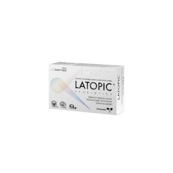 Latopic to preparat zawierający liofilizowane bakterie kwasu mlekowego przeznaczone do postępowania dietetycznego w alergii pokarmowej i atopowym zapaleniu skóry (AZS). Wspiera naturalną barierę jelitową, łagodzi objawy alergiczne oraz sprzyja utrzymaniu równowagi mikrobiologicznej i immunologicznej. Zalecany jest szczególnie dla osób z atopowym zapaleniem skóry oraz nietolerancją laktozy. Jego unikalna formuła bazuje na specjalnie wyselekcjonowanych polskich szczepach bakterii, które pomagają w zredukowaniu świądu, wspierając jednocześnie poprawę jakości snu.