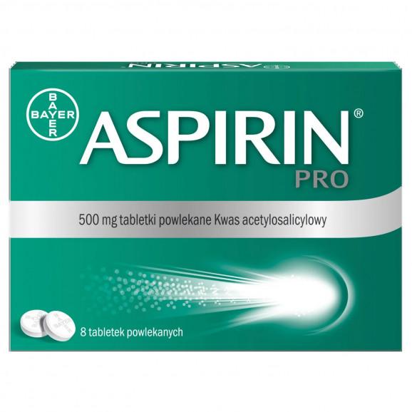 - Nazwa produktu: Aspirin Pro 500 mg, tabletki powlekane, 8 sztuk