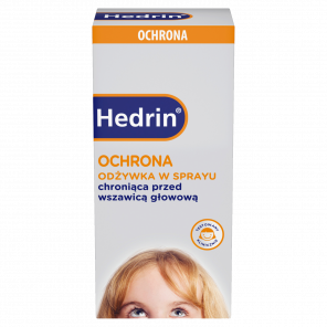 Hedrin Ochrona odżywka w sprayu stanowi skuteczną ochronę włosów przed wszawicą. Zawiera aktywną substancję 1,2-octanodiol (Activdiol®), która przerywa cykl życiowy wszy, uniemożliwiając ich rozmnażanie i rozwój. Formuła przetykana zapachami owocowymi pomarańczy i mango sprawia, że aplikacja produktu jest przyjemna zarówno dla dorosłych, jak i dla dzieci. Może być stosowana jako element rutynowej ochrony oraz pielęgnacji włosów, wspomagając łatwe rozczesywanie i nawilżanie. Produkt jest dedykowany dla wszystkich osób narażonych na zwiększone ryzyko infekcji wszy, takich jak dzieci uczęszczające do przedszkola lub szkoły. Może być używana regularnie na suche lub mokre włosy. Nie ma potrzeby drażnienia skóry mocnymi chemikaliami.