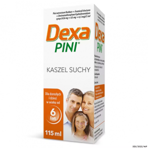 Dexapini to syrop przeciwkaszlowy stosowany w suchym kaszlu w przebiegu stanów zapalnych górnych dróg oddechowych, takich jak przeziębienie, grypa czy zapalenie gardła. Zawiera bromowodorek dekstrometorfanu, który hamuje ośrodek kaszlu w OUN, redukując częstotliwość ataków kaszlu. Uzupełnia go wyciąg z sosny i nalewka z kopru o działaniu sekretolitycznym. Przeznaczony dla dzieci od 4 lat po konsultacji z lekarzem, młodzieży i dorosłych.