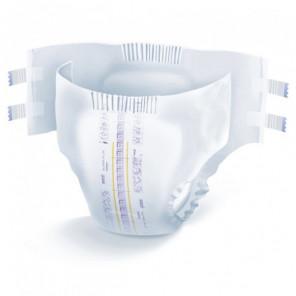 Produkt składa się z oddychającego laminatu, anatomicznego wkładu chłonącego z superabsorbentem neutralizującym zapach, elastycznych przylepców oraz falbanek bocznych.