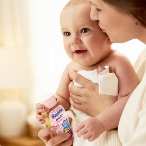 - Rozprowadzić na skórze dziecka po kąpieli lub w ciągu dnia.