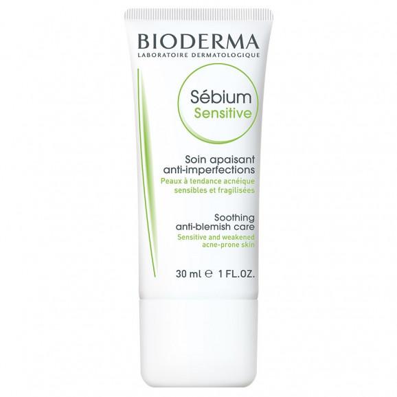 Bioderma Sebium Sensitive, łagodzący krem wspomagający leczenie skóry trądzikowej, 30 ml