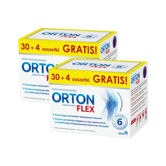 Orton Flex to suplement diety, który wspomaga ruchomość i elastyczność stawów. Wspiera produkcję kolagenu w celu zapewnienia prawidłowego funkcjonowania kości oraz chrząstki.