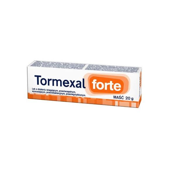 Tormexal Forte to maść lecznicza, której składniki wykazują synergistyczne działanie przeciwzapalne, ściągające i wysuszające. Hamują rozwój bakterii oraz grzybów chorobotwórczych. Zmniejszają świąd, wspomagają naturalne mechanizmy regeneracji i przyspieszają gojenie się ran.