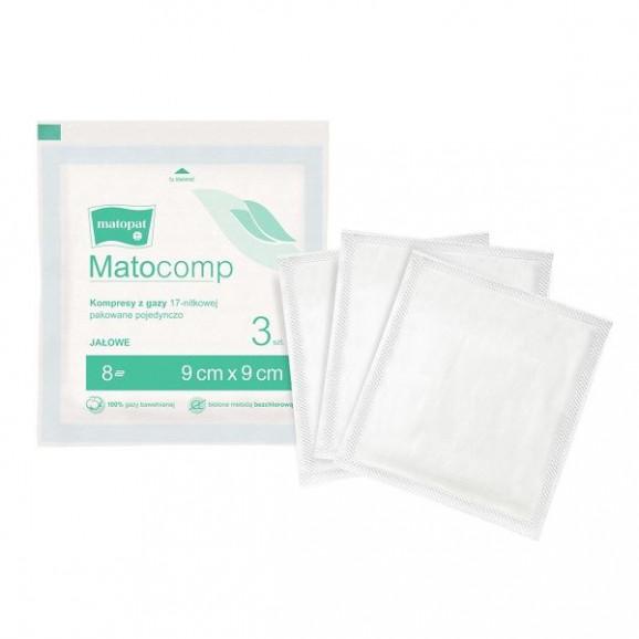 Matocomp, kompres jałowy z gazy, 17-nitkowy, 8‑warstwowy (9 cm x 9 cm, 3 sztuki)