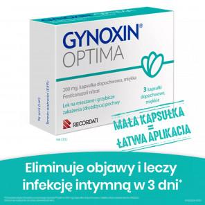Gynoxin Optima to kapsułki dopochwowe zawierające 200 mg azotanu fentikonazolu, stosowane w leczeniu grzybiczych oraz mieszanych infekcji intymnych. Mechanizm działania polega na hamowaniu syntezy ergosterolu w błonach komórkowych grzybów, co prowadzi do ich eliminacji.