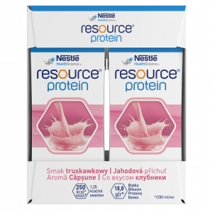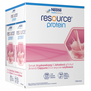Nestlé Resource Protein to wysokobiałkowy dietetyczny środek spożywczy w płynie, zaprojektowany do wsparcia osób z niedożywieniem lub w stanie zagrożenia niedożywieniem.
