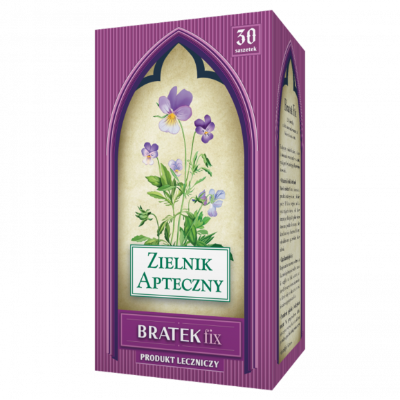Bratek fix to ziołowy produkt leczniczy w formie saszetek do zaparzenia, polecany w leczeniu objawowym łagodnych łojotokowych zmian skórnych takich jak trądzik młodzieńczy, wyprysk czy liszaj rumieniowaty. Działa moczopędnie i oczyszczająco. Zalecany jest dla dorosłych i młodzieży powyżej 18 roku życia. Zawiera ziele fiołka trójbarwnego, które tradycyjnie wspomaga zdrowie skóry i układu moczowego.